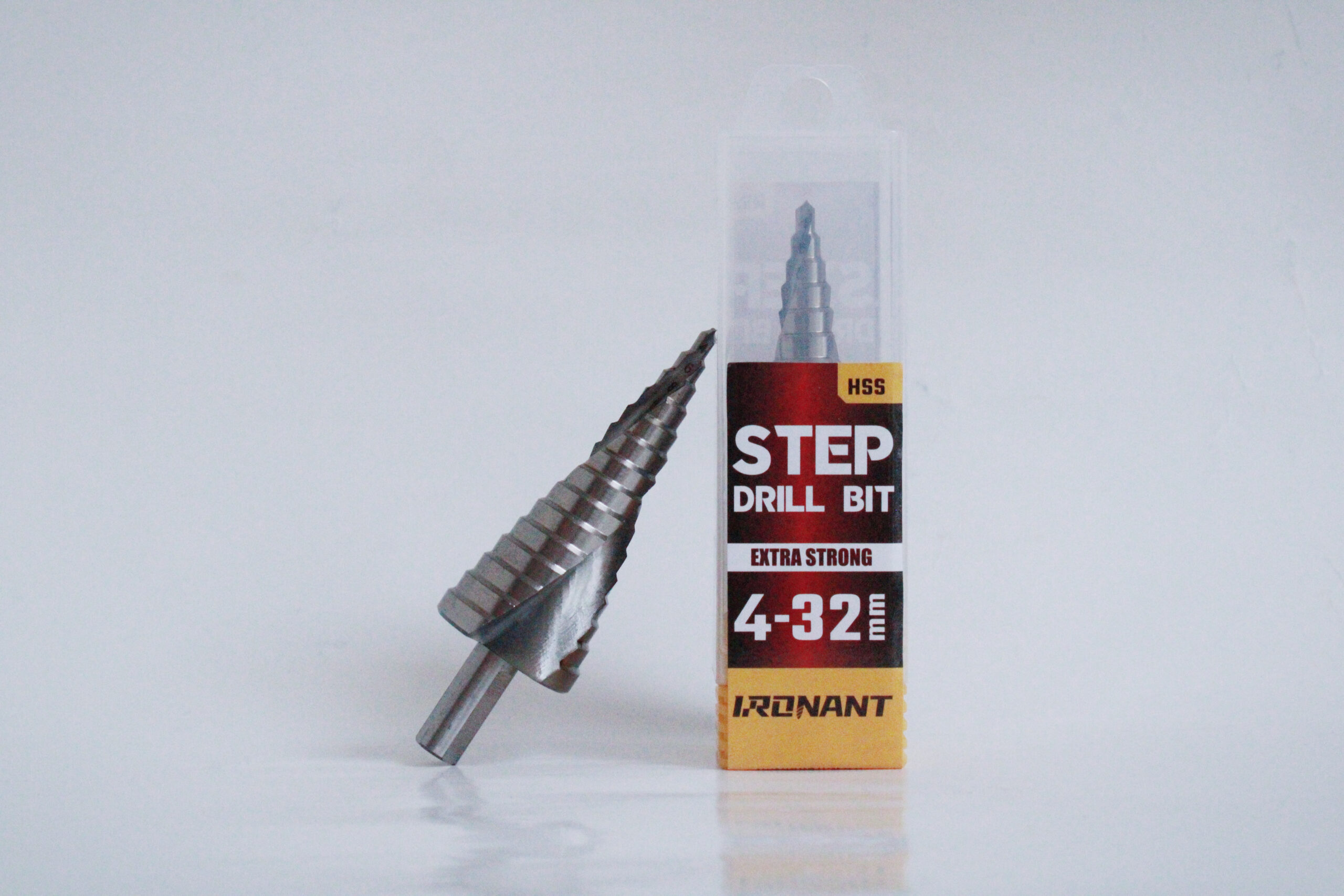 Hoogkwalitatieve Ironant trappenboren die te gebruiken zijn op verschillende metalen, plastics en hout. Voor de klusser die flexibel en snel gaten van meerdere groottes wil kunnen maken in een veelvoud aan materialen. De formaten van de mogelijke boorgaten zijn 4-32mm met telkens stappen van 2 tussen de verschillende tredes en de boor heeft een spiraalgroeve.